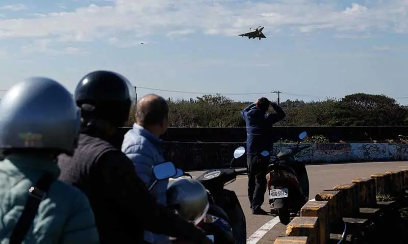 AFP journalists in Pingtan, a Chinese island at the closest point to Taiwan’s main island, saw a volley of rockets blast into the air at around 9:00am (6am PKT) on Tuesday, leaving trails of white smoke.